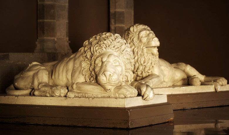 en los balaustres de las balconeras y en la ménsula que sostiene un león